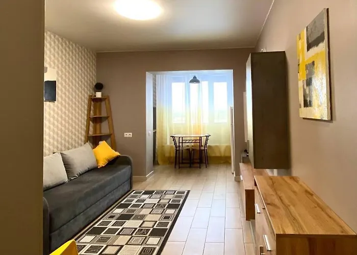 Apartment Hotels Parking Akaciju1 giver dig mulighed for at bo på en indkvartering med 1 værelser tæt på Church of St. Casimir. Der er også et fladskærms TV med satellitkanaler, tv med satellitkanaler og Wi-Fi på værelserne, samt et tekøkken med kaffemaskiner/tekedler, et køleskab og køkkenudstyr.